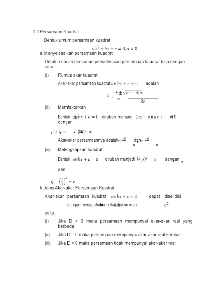 Persamaan Dan Fungsi Kuadrat from www.yumpu.com Karena d > 0 maka persamaan kuadrat memiliki dua akar real yang berbeda. Ada tiga cara utama untuk menyelesaikan persamaan kuadrat: Kedua akar real tandanya positif.