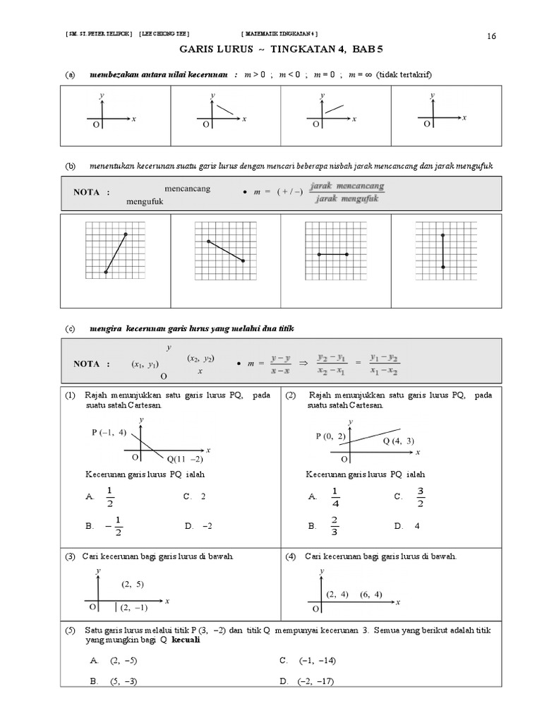 Tangga yang sering kalian temui di secara umum persamaan garis lurus mempunyai bentuk y = mx + c, dengan m menyatakan gradien.