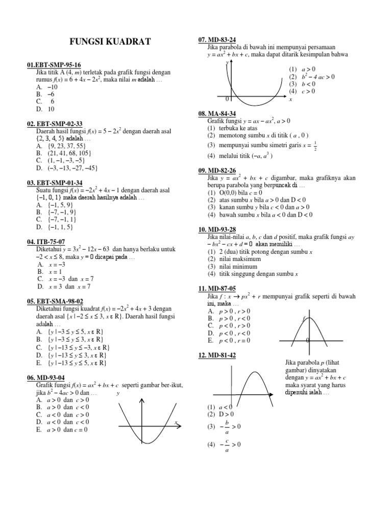 Contoh Soal Persamaan Dan Fungsi Kuadrat Doc. Adapun persamaan seperti pada persamaan c, d, dan e merupakan persamaan fungsi kuadrat. Pada umumnya metode rumus abc biasa digunakan jika pemfaktoran dan melengkapkan kuadrat sempurna tidak bisa dilakukan.
