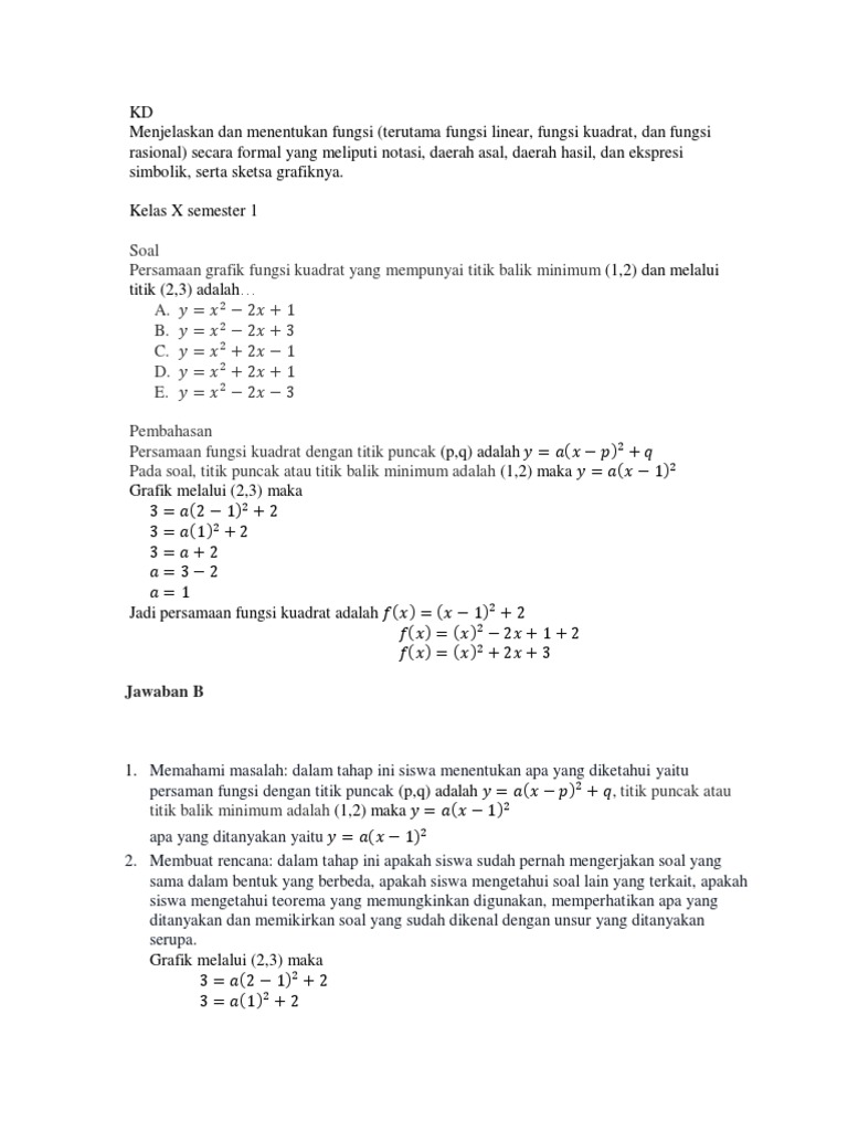 Persamaan Grafik Fungsi Kuadrat Soal. Bentuk umumnya yaitu ax^2 + bx + c = 0. Nilai b yang memenuhi adalah …