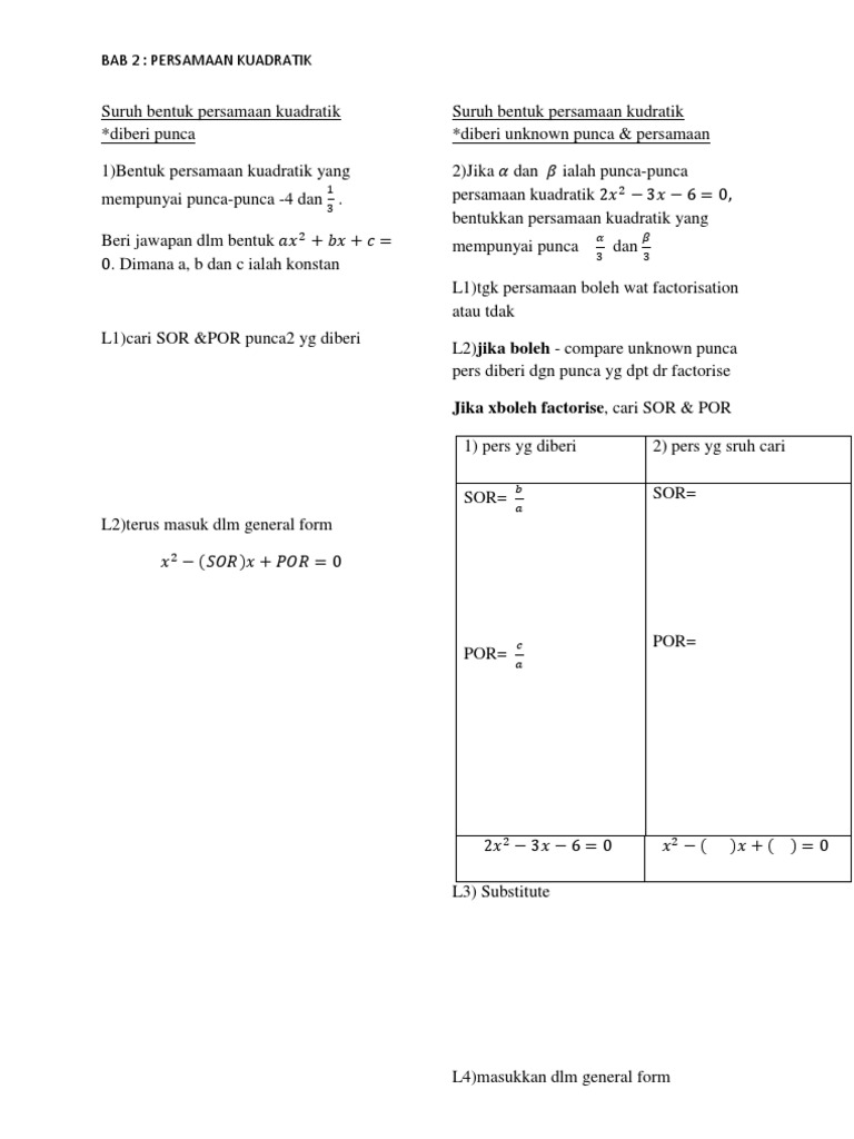 Persamaan Kuadratik Addmath. Tulislah sesuai bentuk umum yang telah disebutkan dalam formulir. Bab2(part1) mate tambahan tingkatan 4 2.1 penyelesaian persamaan kuadratik dan membentuk persamaan by cikgu chong • 17:18.