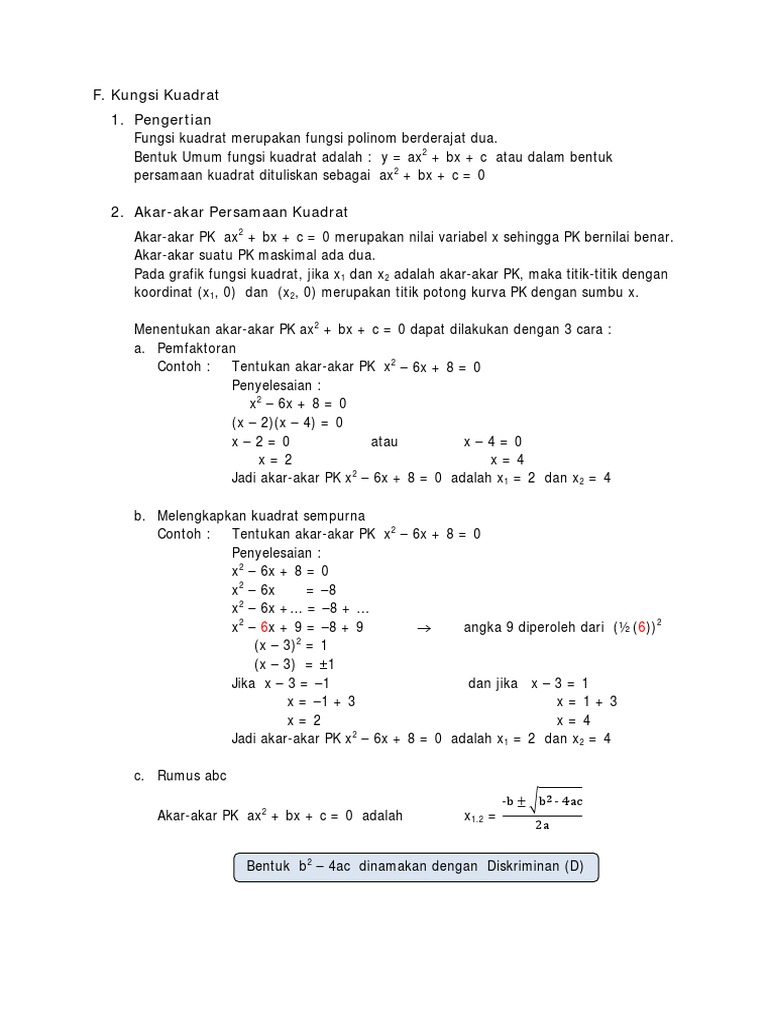 Contoh Persamaan Kuadrat Dan Fungsi Kuadrat