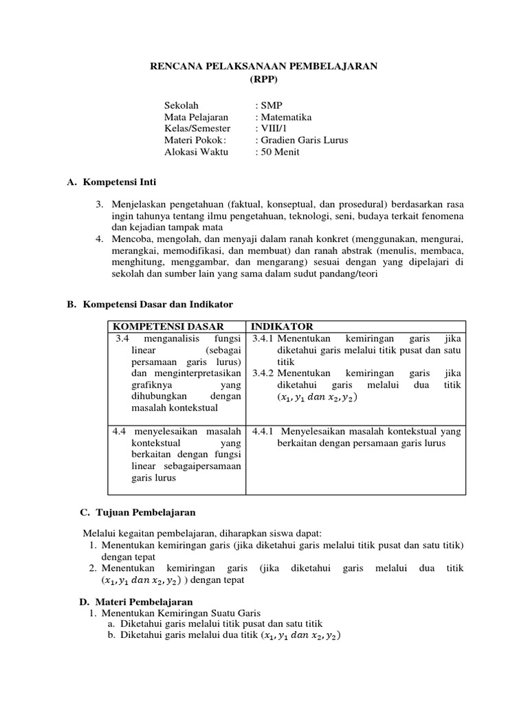 Pengertian dari persamaan garis lurus adalah sebuah persamaan yang jika di gambarkan ke dalam sebuah bidang koordinat cartesius akan membentuk suatu garis lurus. Kali ini kakak akan membagikan soal dan pembahasan yang berkaitan dengan persamaan garis lurus. Persamaan garis lurus part 3 menyusun persamaan garis lurus. Rpp kurikulum 2013 kelas 8 materi persamaan garis lurus pertemuan 1 oleh: