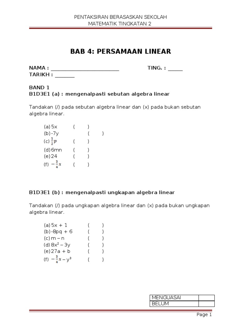Persamaan Linear Matematik Tingkatan 1
