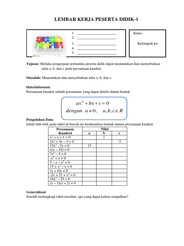 Lkpd Persamaan Kuadrat from imgv2-1-f.scribdassets.com Simak penjelasan lengkapnya di bawah ini. Download contoh soal & pembahasan persamaan & fungsi kuadrat smp dalam. Konstanta pada peubah berpangkat dua tidak boleh nol karena hal ini menyebabkan persamaan tersebut menjadi persamaan linear (bukan persamaan.