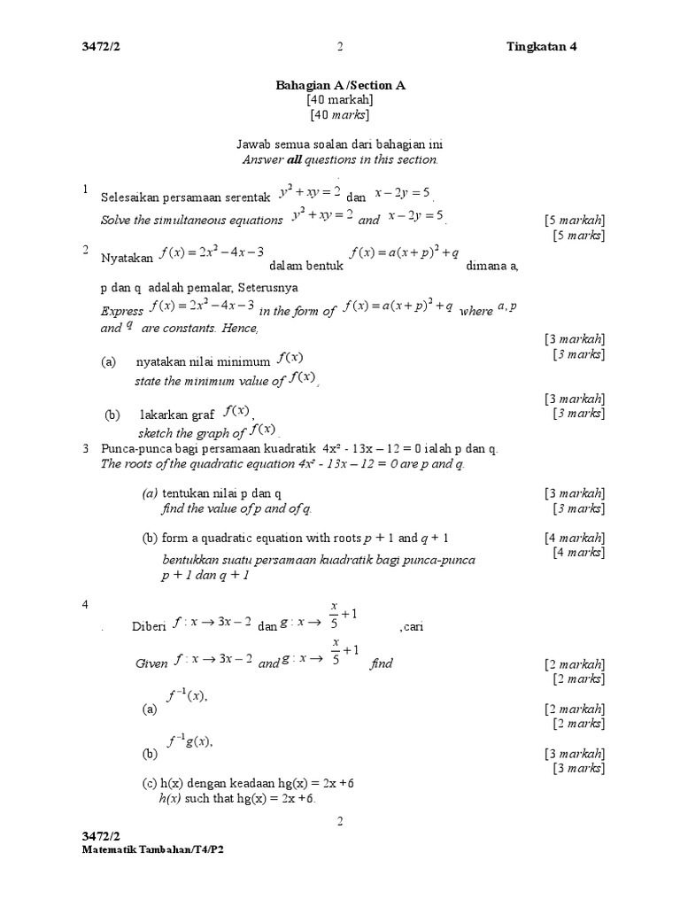 Dengan a, b, merupakan koefisien, dan c adalah konstanta, serta a ≠ 0. Ada tiga cara utama untuk menyelesaikan persamaan kuadrat: Percubaan spm matematik mrsm 2019 kertas 2. Etuisyen live 5 teknik menjawab spm sejarah bab 5 latihan kertas 2 form 5 bab 5.