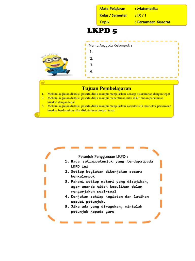 Lkpd Diskriminan Kd 3 2 Docx from imgv2-2-f.scribdassets.com Jika salah satu akar daripersamaan kuadrat x2 + 3 x + c=0 adalah 2, maka nilai c yangmemenuhi adalah… 23. Persamaan kuadrat adalah persamaan matematika dari variabel yang mempunyai pangkat nilai konstanta c pada grafik persamaan menentukan titik potong fungsi parabola dengan sumbu y selesaikan persamaan x2 + 6x + 5 = 0 menggunakan metode persamaan kuadrat sempurna! Jadi, persamaan x2 − 6x + 9 = 0 mempunyai dua akar real dan menggunakan sifat garis singgung grafik fungsi kuadrat, maka berlaku nilai diskriminan (d).