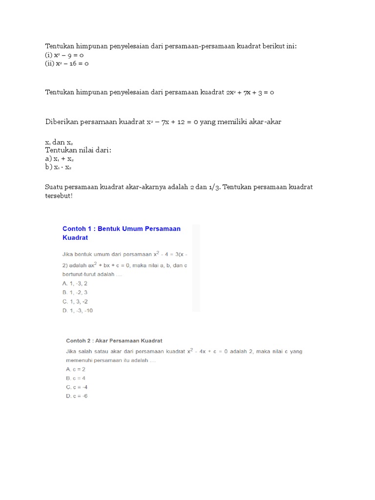 Persamaan Dan Fungsi Kuadrat Kelas 10 Semester 2 . Nilai konstanta c pada grafik persamaan menentukan titik potong fungsi parabola dengan sumbu y. Berikut ini merupakan soal (disertai pembahasannya) ulangan umum matematika kelas xi semester ganjil tahun ajaran 2019/2020 smkn 3 pontianak yang penulis semoga membantu dan bermanfaat! Modul Persamaan Dan Fungsi Kuadrat Pdf from imgv2-2-f.scribdassets.com Rangkuman materi bab persamaan kuadrat disertai contoh soal dan jawaban dengan pembahasan lengkapnya simak disini. Persamaan dan fungsi kuadrat a. Hubungan persamaan kuadrat dan fungsi kuadrat persamaan kuadrat : 36 x (¹/₉)2 x 272=. Nilai konstanta c pada grafik persamaan menentukan titik potong fungsi parabola dengan sumbu y. Metode pemfaktoran dan penggunaan rumus abc telah dipelajari pada tulisan terdahulu matematika kelas 10 sma. Menyelesaikan persamaan kuadrat persamaan kuadrat dapat...
