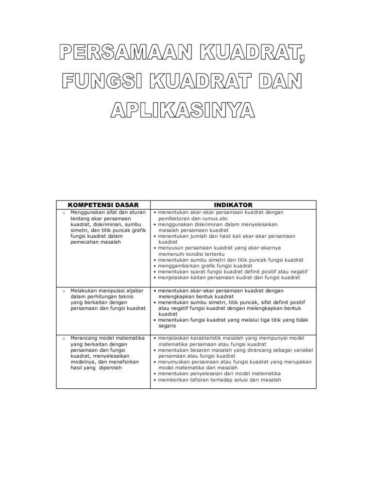 Persamaan kuadratdapat diselesaikan dengan cara menentukan rumus ??? Jumlah hasil kali akar persamaan kuadrat. Untuk menjawab itu, setidaknya ada tiga cara yang bisa kita. Persamaan kuadratdapat diselesaikan dengan cara menentukan rumus ???