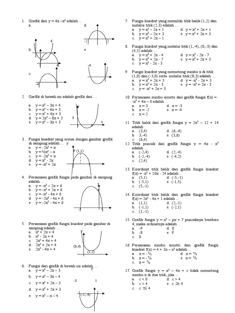 Persamaan Grafik Fungsi Kuadrat Pada Gambar Dibawah Ini Adalah